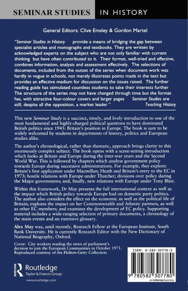 This is a succinct, timely introduction to one of the most highly charged political questions which has dominated British politics since 1945: Britain's position in Europe. The study traces the evolution of British policy towards Europe since 1945, presenting the full international context as well as the impact on domestic party politics - including an analysis of the divisions in the Conservative Party under John Major.