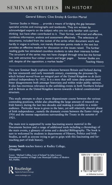 Charting a dispassionate course between the various contending positions, Jeremy Smith synthesises the large amount of research on Irish history during the last two decades, making it available to a wider audience. Particular focus is given to the later, relatively obscure phase of Irish independence - between the Easter rising of 1916 and the intense negotiations surrounding the Treaty in the autumn of 1921.