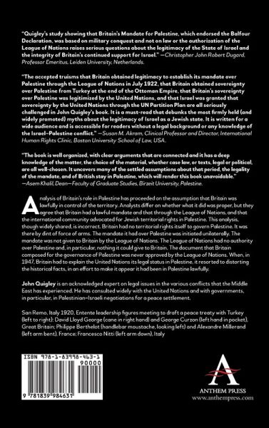Preface Setting the Stage: Was Britain's Rule in Palestine Legal?, The Balfour Declaration Is the Focal Point for the Legal Situation of Palestine The Balfour Declaration Was a Binding Commitment to the Jewish People The Jewish National Home Meant a Jewish State The Balfour Declaration Was Issued to Affirm Jewish Rights in Palestine The Paris Peace Conference Raised Jewish Statehood to the International Level Britain's Allies Made the Balfour Declaration an International Commitment Britain's Allies Endorsed Jewish Rights Britain Took on Palestine Because of the League's Mandate System The League of Nations Protected Palestine's Arab Population Britain Was Given Palestine by the League of Nations The League of Nations Put the Palestine Mandate into Legal Force The Peace Treaty with Turkey Legalized Britain's Status in Palestine The Palestine Mandate Document Was a Treaty between Britain and the League The League of Nations Required Britain to Implement the Balfour Declaration The Palestine Mandate Document Implemented the League Covenant The Palestine Mandate Document Recognized Jews as a National Group The Palestine Mandate Document Bound Britain to the Balfour Declaration The International Community Committed Itself to the Balfour Declaration Britain Held Legal Status in Palestine The United Nations Charter Carried Forward a Jewish Entitlement to Statehood Postscript: Why History Matters Documents Annex Notes Bibliography Index