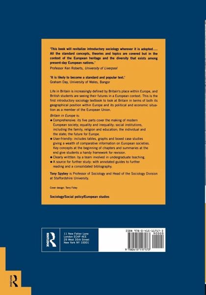 Introduction: Tony Spybey PART ONE: THE MAKING OF MODERN EUROPE: 1. Industrialisation 2. Urbanization and urban Europe: The transition to urban lifestyles and contemporary urban problems 3. The state as a European creation 4. Reason and modernity PART TWO: THE MAKING OF THE MODERN EUROPEAN: 5. Social stratification 6. Women, paid employment and opportunity 7. Racism, immigration and migrant labour 8. Winners and losers: young people in Europe 9. Old Age in Europe PART THREE:SOCIAL PROCESSES AND CONTEMPORARY ISSUES: 10. Families in Europe 11. Education in Europe 12. Religion in Europe 13. Work, employment and unemployment 14. European culture and ideology in mass communication PART FOUR: THE INDIVIDUAL AND THE STATE IN CONTEMPORARY EUROPE: 15. Political participation in Europe: theme and variation 16. Implementing social welfare policy in Europe: The significance of social work, social pedagogy and community work 17. Poverty and social security 18. Health, healthcare and health inequalities 19. Crime and penal policy in Europe PART FIVE: LOOKING FORWARD: CHALLENGES FACING EUROPE: 20. Urban change and urban problems 21. Peripheral nationalism in the European Union 22. Europe's changing role in the globalization process