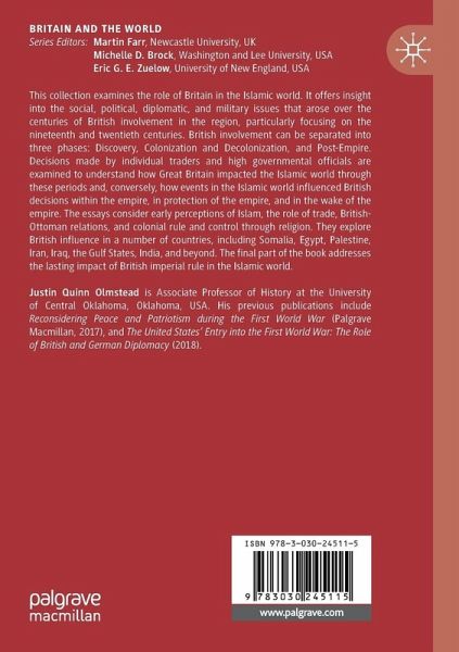 This collection examines the role of Britain in the Islamic world. It offers insight into the social, political, diplomatic, and military issues that arose over the centuries of British involvement in the region, particularly focusing on the nineteenth and twentieth centuries. British involvement can be separated into three phases: Discovery, Colonization and Decolonization, and Post-Empire. Decisions made by individual traders and high governmental officials are examined to understand how Great Britain impacted the Islamic world through these periods and, conversely, how events in the Islamic world influenced British decisions within the empire, in protection of the empire, and in the wake of the empire. The essays consider early perceptions of Islam, the role of trade, British-Ottoman relations, and colonial rule and control through religion. They explore British influence in a number of countries, including Somalia, Egypt, Palestine, Iran, Iraq, the Gulf States, India, andbeyond. The final part of the book addresses the lasting impact of British imperial rule in the Islamic world.