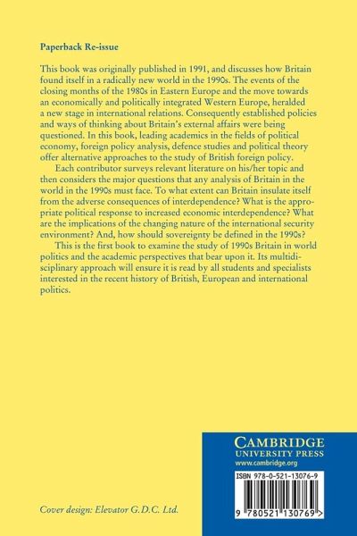 This book, originally published in 1991, discusses how Britain found itself in a radically different world in the 1990s. The events of the closing months of the 1980s in Eastern Europe, and the move towards an economically and politically integrated Western Europe, have heralded a distinct stage in international relations. In this book, leading academics in the fields of political economy, foreign policy analysis, defence studies and political theory offer alternative approaches to the study of British foreign policy. Each contributor surveys relevant literature of his/her topic and then considers the major questions that any analysis of Britain in the world in the 1990s must face. This book examines the study of 1990s Britain in world politics and the academic perspectives that bear upon it. Its multidisciplinary approach will ensure it is read by all students and specialists interested in the recent history of British, European and international politics.