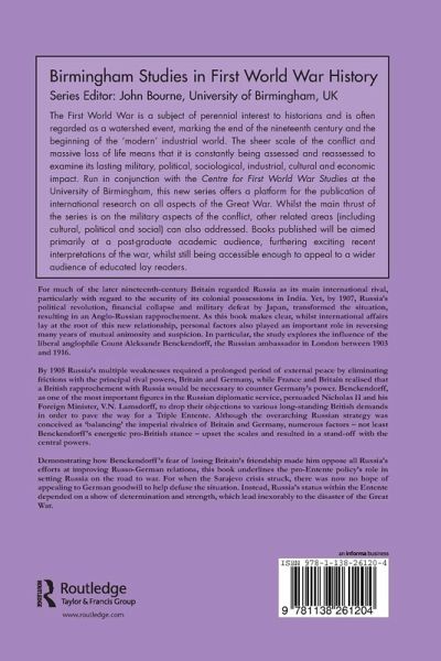 This book demonstrates the role of Count Aleksandr Benckendorff, the Russian ambassador in London between 1903 and 1916, in setting Russia on the road to war. Fearing the loss of Britain's friendship, he opposed all Russia's efforts at improving Russo-German relations and when the Sarajevo crisis struck, there was now no hope of appealing to German goodwill to help defuse the situation. Instead Russia's status within the Entente depended on a show of determination and strength, which lead inexorably to a disaster of the Great War.