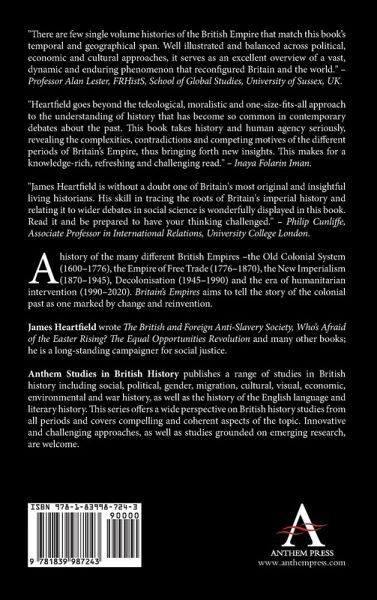 A history of the many different British Empires - the Old Colonial System (1600-1776), the Empire of Free Trade (1776-1870), the New Imperialism (1870-1945), Decolonisation (1945-1990) and the era of humanitarian intervention (1990-2020). Britain's Empires aims to tell the story of the colonial past as one marked by change and reinvention.