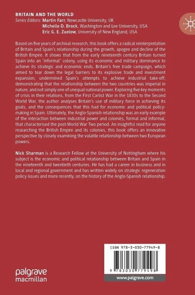 Based on five years of archival research, this book offers a radical reinterpretation of Britain and Spain's relationship during the growth, apogee and decline of the British Empire. It shows that from the early nineteenth century Britain turned Spain into an 'informal' colony, using its economic and military dominance to achieve its strategic and economic ends. Britain's free trade campaign, which aimed to tear down the legal barriers to its explosive trade and investment expansion, undermined Spain's attempts to achieve industrial take-off, demonstrating that the relationship between the two countries was imperial in nature, and not simply one of unequal national power. Exploring five key moments of crisis in their relations, from the First Carlist War in the 1830s to the Second World War, the author analyses Britain's use of military force in achieving its goals, and the consequences that this had for economic and political policy-making in Spain. Ultimately, the Anglo-Spanishrelationship was an early example of the interaction between industrial power and colonies, formal and informal, that characterised the post-World War Two period. An insightful read for anyone researching the British Empire and its colonies, this book offers an innovative perspective by closely examining the volatile relationship between two European powers.