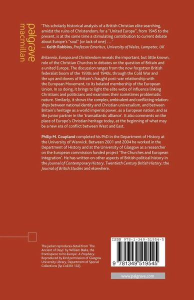 Britannia, Europa and Christendom brings to light the webs of influence linking Christian leaders and politicians and shows the conflicting relationships between national identity and Christian universalism, and between Britain as a one-time world power, a European nation, and junior partner in the 'transatlantic alliance'.