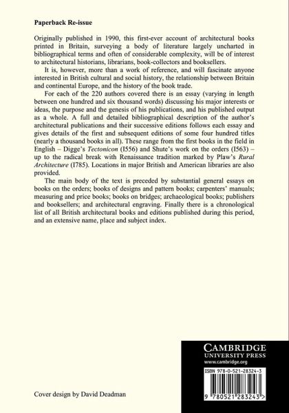 Originally published in 1990, this account of architectural books printed in Britain surveys a body of complex literature largely uncharted in bibliographical terms. It is however, more than a work of reference, and will fascinate anyone interested in British cultural and social history, the relationship between Britain and continental Europe, and the history of the book trade. For each of the 220 authors covered there is an essay discussing his interests, the purpose and the genesis of his publications. A detailed bibliographical description of the author's architectural publications follows each essay and gives details of the first and subsequent editions of some four hundred titles. The main body of the text is preceded by general essays on books on the Orders, bridges, archaeology, engraving, publishing and bookselling; manuals of carpentry and design; and pattern-books. There are detailed indexes.
