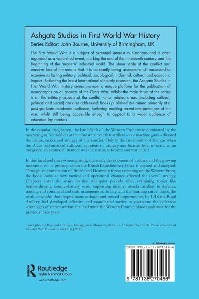 Providing a systematic investigation into the evolving role of the artillery in the British Expeditionary Force, this study looks at how tactical and operational changes affected the overall Allied strategy. In line with the 'learning curve' thesis, it argues that despite many setbacks and missed opportunities, by 1918 the Royal Artillery had developed effective methods to overcome the defensive advantages of trench warfare that had mired the Western Front in bloody stalemate for the previous three years.