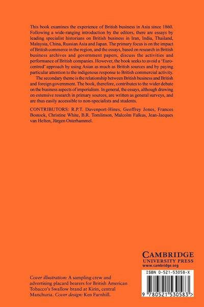 List of illustrations; List of maps; List of tables; Preface; 1. British business in Asia since 1860 R. P. T. Davenport-Hines and Geoffrey Jones; 2. British business in Iran, 1860s-1970s Frances Bostock and Geoffrey Jones; 3. British business in Russian Asia since the 1860s: an opportunity lost? Christine White; 4. British business in India, 1860-1970 B. R. Tomlinson; 5. Early British business in Thailand Malcolm Falkus; 6. British business in Malaysia and Singapore since the 1870s Jean-Jacques van Helten and Geoffrey Jones; 7. British business in China, 1860s-1950s Jürgen Osterhammel; 8. British business in Japan since 1868 R. P. T. Davenport-Hines and Geoffrey Jones; Notes; Index.