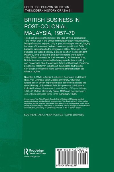 This book explores the limits of the idea of 'neo-colonialism' - the idea that in the period immediately after independence Malaya/Malaysia enjoyed only a 'pseudo-independence', largely because of the entrenched and dominant position of British business interests allied to indigenous elites. The author argues that, although British business did indeed have a strong position in Malaysia in this period, Malaysian politicians and administrators were able to utilise British business, which was relatively weak vis-a-vis the Malaysian state, for their own ends, at the same time as indigenous businesses and foreign, non-British competitors were gathering strength. In addition, despite the commitment of both Conservative and Labour governments in the UK to preserving British influence worldwide through the Commonwealth relationship, British firms in Malaysia received only limited support from the British post-imperial state.