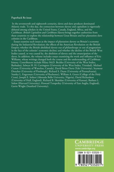 Preface; 1. British capitalism and Caribbean slavery: the legacy of Eric Williams: an introduction Barbara L. Solow and Stanley L. Engerman; Part I. Slavery as an Economic Phenomenon: 2. Race and slavery: considerations on the Williams Thesis William A. Green; Part II. Caribbean Slavery and the Industrial Revolution: 3. Capitalism and slavery in the exceedingly long run Barbara L. Solow; 4. Slavery and the development of industrial capitalism in England Joseph E. Inikori; 5. The slave trade, sugar, and British economic growth, 1748-1776 David Richardson; Part III. The Decline of the British West Indies: 6. The American Revolution and the British West Indies' economy Selwyn H. H. Carrington; 7. 'Dreadful Idlers' in the cane fields: the slave labor pattern on a Jamaican sugar estate, 1762-1831 Richard S. Dunn; Part IV. The Basis of Abolition and Emancipation: 8. Paradigms tossed: capitalism and the political sources of abolition Seymour Drescher; 9. Capitalism, abolitionism, and hegemony David Brion Davis; 10. Eric Williams and abolition: the birth of a new orthodoxy Howard Temperley; 11. What and who to whom and what: the significance of slave resistance Michael Craton; Part V. capitalism and Slavery in Historical Perspective: 12. Capitalism and slavery on the Islands: a lesson from the mainland Gavin Wright; 13. 'The Williams Effect': Eric Williams's Capitalism and Slavery and the growth of West Indian political economy Hilary McD. Beckles; 14. Eric Williams and Capitalism and Slavery: a biographical and historiographical essay Richard B. Sheridan.