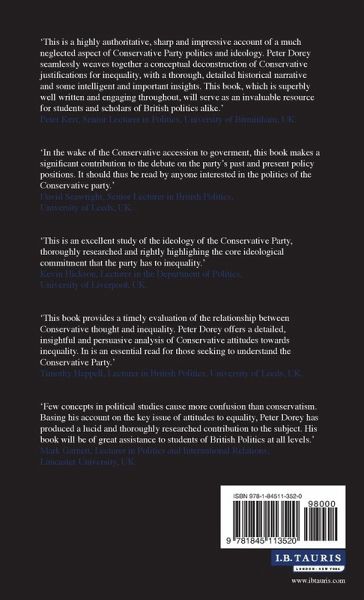 Defence of inequality has always been a core principle of the Conservative Party in Great Britain. Yet the Conservatives have enjoyed great electoral success in a British society marked by widespread inequalities of wealth and income. Peter Dorey here examines the intellectual and political arguments which Conservatives use to justify inequality. He also considers debates between Conservatives over how much inequality is desirable or acceptable. Should inequality be unlimited, in order to promote liberty, incentives and rewards? Or should inequality be kept within certain bounds to prevent social breakdown and political upheaval? Finally, he examines why some less prosperous sections of British society have nonetheless supported the Conservatives instead of political parties promoting equality. This book will be an important resource for students and commentators of contemporary British politics.