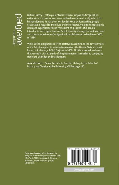 The idea of Britain has been understood largely in terms of sectarian conflict and state formation, whereas emigration has most often been explored in terms of economic and social history. This book explores the relationship between two subjects normally studied in isolation, and includes emigration from Ireland as a social phenomenon which cannot be understood in isolation from modern British History, as well as the impact of British emigration on the ethos and identity of the British Empire at its zenith at the turn of the Nineteenth and Twentieth centuries.