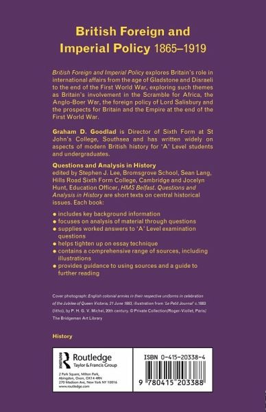 British Foreign and Imperial Policy explores Britains role in International Affairs from the age of Gladstone and Disraeli to the end of the First World War, exploring such themes as Britain's involvement in the Scramble for Africa, the Anglo-Boer War, the foreign policy of Lord Salisbury and the prospects for Britain and the Empire at the end of the First World War.