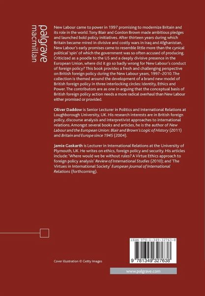 Foreword; S.Wall Introduction: Blair, Brown and New Labour's Foreign Policy, 1997-2010; J.Gaskarth & O.Daddow PART I: IDENTITY The New Labour Governments and Britain's Role in the World; D.McCourt New Labour, Devolution and British Identity: The Foreign Policy Consequences; P.Schnapper New Labour, Leadership, and Foreign Policy-making after 1997; S.Dyson Identity and New Labour's Strategic Foreign Policy Thinking; J.Gaskarth PART 2: ETHICS From 'Ethical Foreign Policy' to National Security Strategy: Exporting Domestic Incoherence; T.McCormack A Difficult Relationship: Britain's 'Doctrine of International Community and America's 'War on Terror'; J.Ralph New Labour and Nuclear Weapons; D.Allen PART 3: POWER Still 'leading from the edge'? New Labour and the European Union; P.Holden Britain's Relations with China Under New Labour: Engagement and Repulsion?; K.Brown From Asset to Liability: Blair, Brown and the 'Special Relationship; M.Phythian New Labour, Defence and the 'War on Terror'; M.Taylor Conclusion; O.Daddow