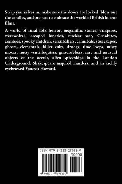 Strap yourselves in, make sure the doors are locked, blow out the candles, and prepare to embrace the world of British horror films. A world of rural folk horror, megalithic stones, vampires, werewolves, escaped lunatics, nuclear war, Cenobites, zombies, spooky children, serial killers, cannibals, stone tapes, ghosts, elementals, killer cults, droogs, time loops, misty moors, nutty ventriloquists, graverobbers, rare and unusual objects of the occult, alien spaceships in the London Underground, Shakespeare inspired murders, and an archly eyebrowed Vanessa Howard.