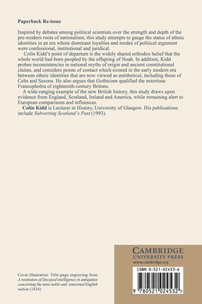 Acknowledgements 1. Introduction Part I. Theological Contexts: 2. Prologue: the mosaic foundations of early modern British identity 3. Ethnic theology and British identities Part II. The Three Kingdoms: 4. Whose ancient constitution? Ethnicity and the English past, 1600-c. 1790 5. Britons, Saxons and the Anglican quest for legitimacy 6. The Gaelic dilemma in early modern Scottish political culture 7. The weave of Irish identities, 1600-c. 1790 Part III. Points of Contact: 8. Constructing the pre-romantic Celt 9. Mapping a Gothic Europe 10. The varieties of Gothicism in the British Atlantic world, 1689-c. 1790 11. Conclusion Index.