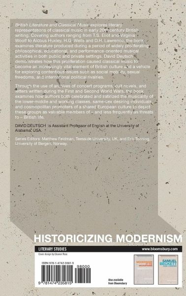 British Literature and Classical Music explores literary representations of classical music in early 20th century British writing. Covering authors ranging from T.S. Eliot and Virginia Woolf to Aldous Huxley, H.G. Wells and D.H. Lawrence, the book examines literature produced during a period of widely proliferating philosophical, educational, and performance-oriented musical activities in both public and private settings. David Deutsch demonstrates how this proliferation caused classical music to become an increasingly vital element of British culture and a vehicle for exploring contentious issues such as social mobility, sexual freedoms, and international political rivalries. Through the use of archives of concert programs, cult novels, and letters written during the First and Second World Wars, the book examines how authors both celebrated and satirized the musicality of the lower-middle and working classes, same-sex desiring individuals, and cosmopolitan promoters of a shared European culture to depict these groups as valuable members of and - less frequently as threats to - British life.