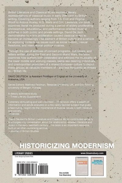 British Literature and Classical Music explores literary representations of classical music in early 20th century British writing. Covering authors ranging from T.S. Eliot and Virginia Woolf to Aldous Huxley, H.G. Wells and D.H. Lawrence, the book examines literature produced during a period of widely proliferating philosophical, educational, and performance-oriented musical activities in both public and private settings. David Deutsch demonstrates how this proliferation caused classical music to become an increasingly vital element of British culture and a vehicle for exploring contentious issues such as social mobility, sexual freedoms, and international political rivalries. Through the use of archives of concert programs, cult novels, and letters written during the First and Second World Wars, the book examines how authors both celebrated and satirized the musicality of the lower-middle and working classes, same-sex desiring individuals, and cosmopolitan promoters of a shared European culture to depict these groups as valuable members of and - less frequently as threats to - British life.
