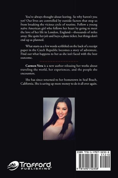 You've always thought about leaving. So why haven't you yet? Our lives are controlled by outside factors that stop us from breaking the vicious cycle of routine. Follow a young naïve American girl who follows her heart by going to meet the love of her life in London, England-thousands of miles away. She quits her job and buys a plane ticket, but things don't end up as planned. What starts as a few words scribbled on the back of a receipt paper in the Czech Republic becomes a story of adventure. Find out what happens to her as she isn't faced with the best outcome.