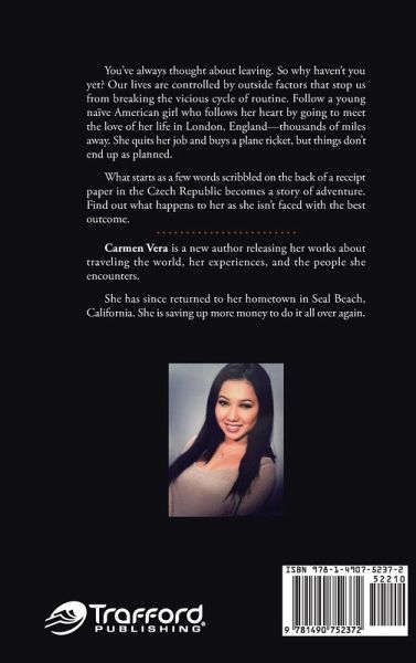 You've always thought about leaving. So why haven't you yet? Our lives are controlled by outside factors that stop us from breaking the vicious cycle of routine. Follow a young naïve American girl who follows her heart by going to meet the love of her life in London, England-thousands of miles away. She quits her job and buys a plane ticket, but things don't end up as planned. What starts as a few words scribbled on the back of a receipt paper in the Czech Republic becomes a story of adventure. Find out what happens to her as she isn't faced with the best outcome.