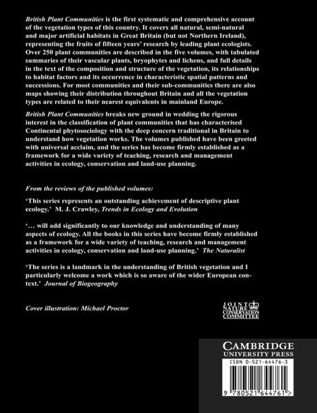 British Plant Communities is the first systematic and comprehensive account of the vegetation types of this country. It breaks new ground in wedding the phytosociological classification of plant communities with an understanding of how vegetation works.