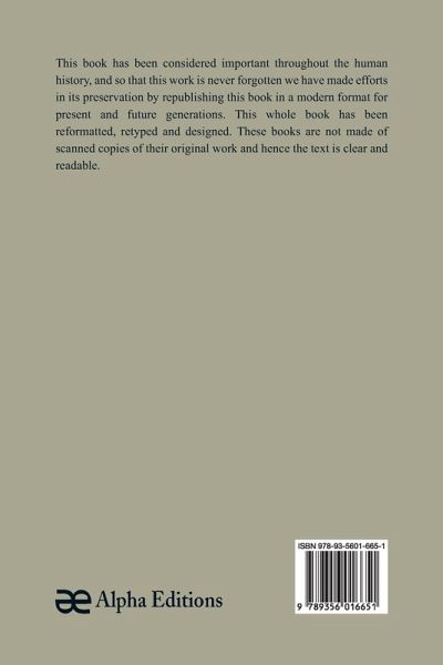 This book has been considered important throughout the human history, and so that this work is never forgotten we have made efforts in its preservation by republishing this book in a modern format for present and future generations. This whole book has been reformatted, retyped and designed. These books are not made of scanned copies and hence the text is clear and readable.