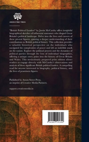 "British Political Leaders" by Justin McCarthy offers insightful biographical sketches of influential statesmen who shaped Great Britain's political landscape. Delve into the lives and careers of these pivotal figures, gaining a deeper understanding of their contributions to British political history. This collection provides a valuable historical perspective on the individuals who navigated the complexities of power and left an indelible mark on the nation. Explore the political process and the dynamics of political parties through the lens of individual biographies, offering a unique entry point into the history of Great Britain and Wales. This meticulously prepared print edition allows readers to engage directly with McCarthy's observations and analysis of these significant British political leaders. A compelling read for anyone interested in biography, political history, and the lives of prominent figures. This work has been selected by scholars as being culturally important, and is part of the knowledge base of civilization as we know it. This work is in the public domain in the United States of America, and possibly other nations. Within the United States, you may freely copy and distribute this work, as no entity (individual or corporate) has a copyright on the body of the work. Scholars believe, and we concur, that this work is important enough to be preserved, reproduced, and made generally available to the public. We appreciate your support of the preservation process, and thank you for being an important part of keeping this knowledge alive and relevant.