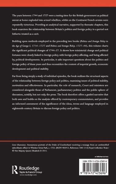 The years between 1744 and 1757 were a testing time for the British government as political unrest at home exploded into armed rebellion, whilst on the continent French armies were repeatedly victorious. Providing an analytical narrative, supported by thematic chapters, this book examines the relationship between Britain's politics and foreign policy in a period not hitherto treated as a unit. Building upon methods employed in the preceding two books ('Politics and Foreign Policy in the Age of George I, 1714-1727' and 'Politics and Foreign Policy, 1727-44'), this volume charts the significant political changes of 1744-57. It shows how ministerial change and political fortunes were closely linked to foreign policy, with foreign policy affecting, and being affected by, political developments. In particular, it asks important questions about the politics and foreign policy of these years and thus reconsiders the context of imperial growth, economic development and political stability. Far from being simply a study of individual episodes, the book outlines the structural aspects of the relationship between foreign policy and politics, examining issues of political stability, motivation and effectiveness. In particular, the role of monarch, Court and ministers are considered alongside those of Parliament, parliamentary politics, and the public sphere of discussion, notably, but not only, the press. The book therefore offers a guided narrative that both uses and builds on the analysis offered by contemporary commentators, and provides an informed assessment of the significance of the ideas, terms and language employed in eighteenth-century Britain to discuss foreign policy and politics.