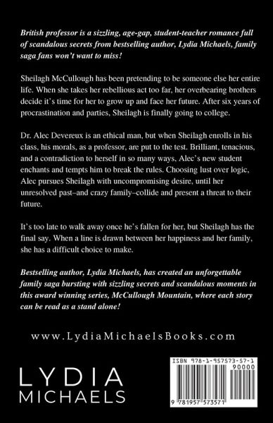 A forbidden, age-gap, teacher-student romance from bestselling author Lydia Michaels, packed with heat, humor, and family drama that tests love in the best-and worst-ways. He's her professor. She's his reckless temptation. All hell breaks loose when her overprotective, backwoods brothers find out who's been giving their little sister private lessons. Sheilagh McCullough is a wild child in need of reform, but after one too many bad decisions, her family forces her to go to college. Enter Dr. Alec Devereux-brilliant, broody, and sophisticated older gentleman who knows better than to blur professional lines. But Sheilagh is a force to be reckoned with and resisting her is impossible. Their secret affair is scandalous, passionate, and destined for disaster-especially when Sheilagh's fiercely loyal brothers discover what she's been up to while away at university.