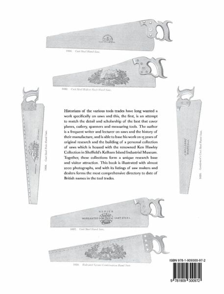 Historians of the various tools trades have long wanted a work specifically on saws and this, the first, is an attempt to match the detail and scholarship of the best that cover planes, cutlery, spanners and measuring tools. The author is a frequent writer and lecturer on saws and the history of their manufacture, and is able to base his work on 15 years of original research and the building of a personal collection of saws - probably the largest in the world - which is housed with the renowned Ken Hawley Collection in Sheffield's Kelham Island Industrial Museum. Together, these collections form a unique research base and visitor attraction. This scholarly book is illustrated with almost 2000 photographs, the majority by the author, and with its listings of saw makers and dealers forms the most comprehensive directory to date of British names in the tool trades.