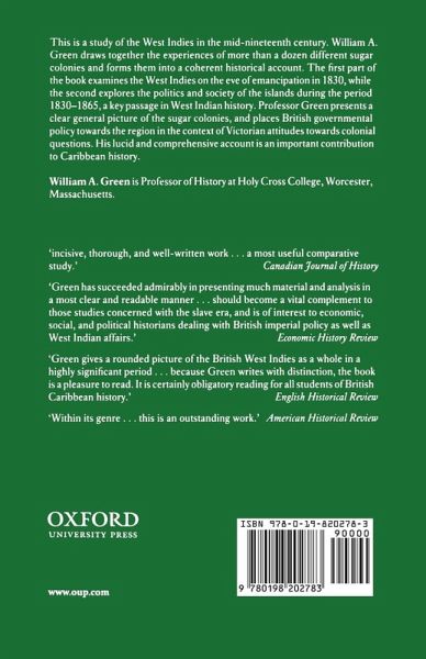 This is a study of the West Indies in the mid-nineteenth century. William A. Green draws together the experiences of more than a dozen different sugar colonies and forms them into a coherent historical account. The first part of the book examines the West Indies on the eve of emancipation in 1830; the second explores the politics and society of the islands during the period 1830-1865, a key passage in West Indian history. Professor Green presents a clear general picture of the sugar colonies, and places British governmental policy towards the region in the context of Victorian attitudes towards colonial questions. His lucid and comprehensive account is an important contribution to Caribbean history.