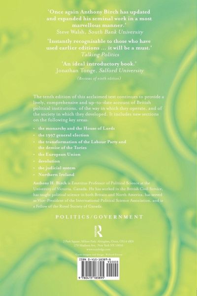 The tenth edition of this acclaimed text continues to provide a lively, comprehensive and up-to-date account of British political institutions, of the way in which they operate, and of the society in which they developed. It includes new sections on the following key areas: the monarchy and the House of Lords the 1997 general election the transformation of the Labour party and the demise of the Tory's the European Union devolution the judicial system Northern Ireland.