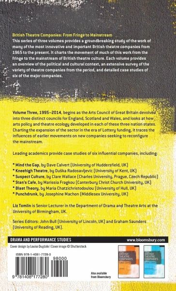 This series of three volumes provides a groundbreaking study of the work of many of the most innovative and important British theatre companies from 1965 to 2014. Each volume provides a survey of the political and cultural context, an extensive survey of the variety of theatre companies from the period, and detailed case studies of six of the most important companies. Volume Three, 1995-2014, charts the expansion of the sector in the era of Lottery funding and traces the resistant influences of earlier movements in the emergence of new companies and an independent theatre ecology that seeks to reconfigure the mainstream. Leading academics provide case studies of six of the most important companies, including: * Mind the Gap, by Dave Calvert (University of Huddersfield, UK) * Blast Theory, by Maria Chatzichristodoulou (University of Hull, UK) * Suspect Culture, by Clare Wallace (Charles University, Prague, Czech Republic) * Punchdrunk, by Josephine Machon (Middlesex University, UK) * Kneehigh, by Duska Radosavljevic (University of Kent, UK) * Stan's Cafe, by Marissia Fragkou (Canterbury Christ Church University, UK)