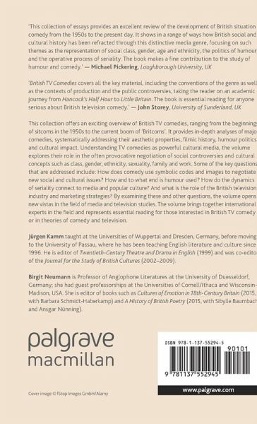 "This volume is sensitive to identity formations involving social class, gender, ethnicity, race, and factory labour. ... The transnational authors of British TV Comedies, British and German, building on this expanding research, have elevated television comedy to a medium worthy of transcultural, cultural and political consideration for scholarly and general audiences." (Marcia Landy, Historical Journal of Film, Radio and Television, Issue 2, September, 2016)