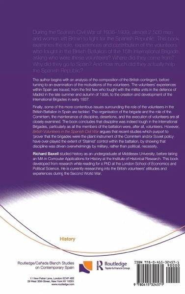 During the Spanish Civil War of 1936-1939 almost 2,500 men and women left Britain to fight for the Spanish Republic. This book examines the role, experiences and contribution of the volunteers who fought in the British Battalion of the 15 International Brigadesasking: * Who were these volunteers? * Where did they come from? * Why did they go to Spain? * How much did they actually help the Spanish Republic? In contrast to recent revisionist interpretations, this work stresses the crucial importance of the war experience itself, rather than political ideology, in the understanding of the volunteers' role and experiences within the Spanish war. This book will be of essential interest to historians and those interested in the Spanish Civil War.