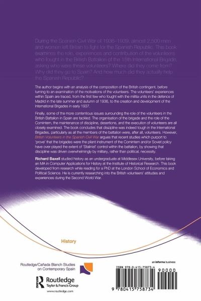 During the Spanish Civil War of 1936-1939 almost 2,500 men and women left Britain to fight for the Spanish Republic. This book examines the role, experiences and contribution of the volunteers who fought in the British Battalion of the 15 International Brigadesasking: * Who were these volunteers? * Where did they come from? * Why did they go to Spain? * How much did they actually help the Spanish Republic? In contrast to recent revisionist interpretations, this work stresses the crucial importance of the war experience itself, rather than political ideology, in the understanding of the volunteers' role and experiences within the Spanish war. This book will be of essential interest to historians and those interested in the Spanish Civil War.