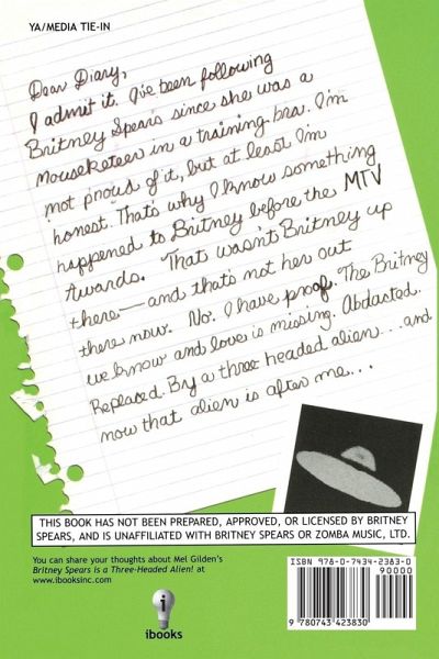 For the millions of fans who have made Britney Spears the hottest female singer in America comes a parody that takes the reader into the Adrian-Mole-ish world of a California teen! Dear Diary; I admit it. I've been following Britney Spears since she was a Mouseketeer in a training bra. I'm not proud of it, but at least I'm honest. That's why I know something happened to Britney before the MTV Awards. That wasn't Britney up there, and that's not her out there now! I have proof. The Britney we know and love is missing. Abducted. Replaced. By a three-headed alien...and now that alien is after me... For Liz Barlowe and her best friend Chad Carter, a chance to meet pop star Britney Spears would pretty much be the pinnacle of their adolescent careers. Unfortunately, before they get the chance, a spaceship lands in their Los Angeles neighborhood, and Britney is abducted by aliens. "Drama," as the dry-witted Liz likes to say. Liz and Chad take it upon themselves to save Britney--and the world--from the devious alien leader, Dr. Osco, a.k.a. Bridget, and her silver-suited henchmen. Ideally, of course, they'll also meet the cute blonde singer herself in the process, and maybe even get to hang with her. Or at least sing backup to "Oops!... I Did It Again." But saving the world (and Britney) is a lot harder than one might think. When aliens aren't controlling the minds of the youth of the world, leading them to rebel against the grownups ("We've labored under the oppressive thumbs of the adults long enough! Britney is our only friend!"), they're trying to chase Liz and Chad through space gates into other planets on the far side of the moon. But the two persevere, and ultimately prevail, although Liz isn't entirely satisfied with the outcome... Mel Gilden's send-up of L.A., American teens, Hollywood, UFOs, and Britney Spears is just goofy enough to appeal to cynics, with enough pop culture references to be a draw for Britney fans as well. Unfortunately, it drags on a bit, although the alternating diary excerpts and narrative provide a nice balance. Entertaining fluff for those dry spells between new Britney albums. (Ages 8 to 12) --Emilie Coulter