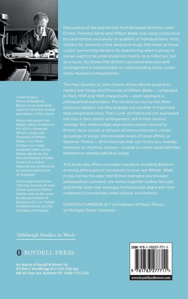 Presents a first analytical study that looks at the overarching designs of Benjamin Britten's John Donne, Thomas Hardy and William Blake solo song cycles.