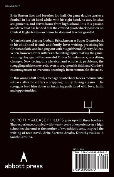 Britz Barton lives and breathes football. On game day, he carries a football in his left hand while, with his right hand, he eats, finishes assignments, and drives home from high school. It is this passion and drive that has landed him the coveted quarterback position on Central High's team-an honor he does not take for granted. When he is not playing football, Britz, known as Super Quarterback to his childhood friends and family, loves writing, practicing his Christian faith, and hanging out with his girlfriend, Christy Sellers. When, however, Britz suffers a debilitating injury making the game- winning play against the powerful Milton Mountaineers, everything changes. Now facing dire physical and scholastic problems, the struggling athlete must rely, even more, upon his faith and Christy's encouragement to overcome seemingly insurmountable obstacles. In this young adult novel, a teenage quarterback faces a monumental setback after he suffers a crippling injury during a game. His struggles lead him down an inspiring path lined with love, faith, and opportunities.