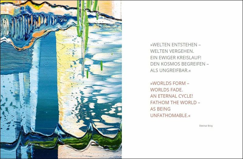 Mal zieht sich die Farbe vor ruhigeren Farbschichten zurück wie ein Vorhang und öffnet Räume mit dreidimensionaler Wirkung wie in Brixys großformatiger Serie Reflect. Mal gruppieren sich Rundbilder, Bamboo-Bubbles genannt, an der Wand zu Ensembles, die von den zyklischen Prozessen der Natur, ihrem Wachsen und Vergehen erzählen. Die anlässlich einer Begleitausstellung zur Biennale in Venedig konzipierte Werkschau in Buchformat lenkt den Blick prächtig auf Brixys pulsierende Welt.