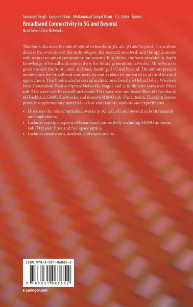 Introduction.- Evolution of Broadband Connectivity for Different Network Generations.- Broadband Connectivity and its Types of 5G and Beyond.- Next Generation Passive Optical Networks Stage 2 for Fronthauling of 5G and Beyond.- Millimeter and Sub-THz Wave Over Fiber for Broadband Connectivity between RRH and BBU.- Hybrid Fiber and Wireless Access Network for 5G and Beyond.- MIMO Antennas: Recent Developments and Design Issues.- Metamaterial based MIMO Antenna for Broadband Connectivity.- 5G MIMO Antenna Systems.- Terahertz Optical Transmission based on Coherent Digital Signal Processing.- M-ary Signalling for FSO under Different Atmospheric Conditions.- Spatial Mode Division Multiplexing Approach to Conquer Capacity Barricade of Optical Fibers.- GMPLS Network Connectivity for 5G and Beyond.- Switching Elements for Broadband Connectivity in 5G and Beyond.- Role of Radio over Fiber for Broadband connectivity.- Future Research Directions and Scope.- Conclusion.
