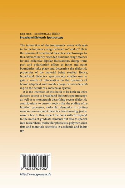 "Modern dielectric spectroscopy can provide new and detailed information on a broad range of materials ... . Certainly, it is timely to have a book that offers a comprehensive introduction to the technique ... . Given the dramatic increase in the application of dielectric spectroscopy of late, a research monograph is also welcome. This ambitious text succeeds in this two-fold purpose. ... Its presence is well-deserved in the library of dielectric spectroscopists or any scientist interested in acquiring a thorough introduction ... ." (C.M. Roland,Journal of the American Chemical Society, Vol. 125, 2003)