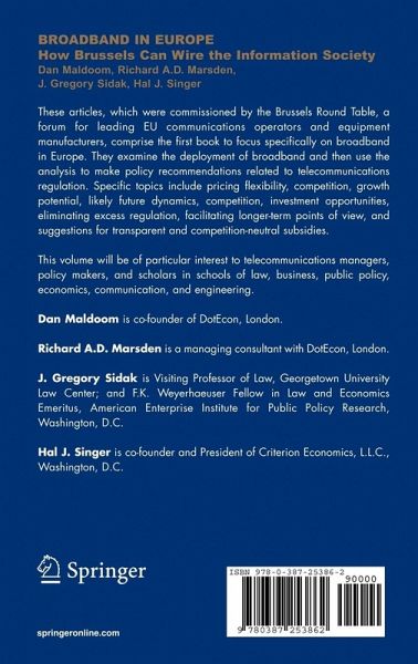 Broadband is a key enabler of the information society, increasing productivity and competitiveness across all sectors of the economy. Unlike traditional n- rowband connections, broadband provides high speed, always-on connections to the Internet and supports innovative content and services. Direct consumer welfare gains from mass-market adoption of broadband across the EU could easily reach 50 billion euros or more per annum. This is quite apart from the more profound societal shifts that ubiquitous broadband could bring. It may allow the individual to distribute content and ideas independent of traditional media and bring together communities of interest without regard to borders. Public policy for broadband will have a big impact on whether and how quickly these bene?ts are realised. Getting policy right could bring large bene?ts for consumers, ?rms and the economy at large; getting policy wrong risks s- ?ing both the rollout of broadband and new innovative services, and thus the realisation of the EU's e-Europe vision. In this book, we focus on the residential market for broadband access in EU countries, analysing the current and prospective level of competition and dr- ing implications for public policy. A key aim is to understand better the relative importance of facilities-based and access-based provision in fostering com- tition and promoting take-up of broadband services.