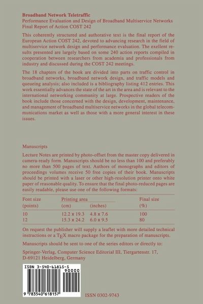 The excellent results presented are largely based on some 240 action reports compiled in cooperation between researchers from academia and professionals from industry and discussed during the COST 242 meetings. The 18 chapters of the book are divided into parts on traffic control in broadband networks, broadband network design, and traffic models and queueing analysis; also included is a bibliography listing 412 entries. This work essentially advances the state of the art in the area and is relevant to the international networking community at large.