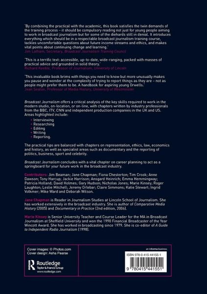 Offers a critical analysis of the key skills required to work in the modern studio, on-location, or on-line, with chapters written by industry professionals from the BBC, ITV, CNN and independent production companies in the UK and US. This title highlights areas such as: Interviewing; Researching; Editing; Writing; and, Reporting.