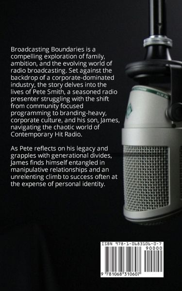 Broadcasting Boundaries is a compelling exploration of family, ambition, and the evolving world of radio broadcasting. Set against the backdrop of a corporate-dominated industry, the story delves into the lives of Pete Smith, a seasoned radio presenter who joined radio when it was community focused programming, and his dislike of the branding-heavy, corporate culture, and his son, James, navigating the corporate chaotic world of Contemporary Hit Radio. As Pete reflects on his legacy and grapples with generational divides, James finds himself entangled in manipulative relationships and an unrelenting climb to success often at the expense of personal identity.
