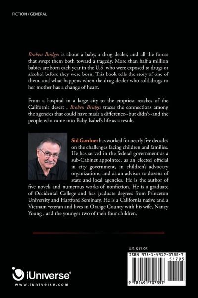 Broken Bridge is about a baby, a drug dealer, and all the forces that swept them both toward a tragedy. More than half a million babies are born each year in the U.S. who were exposed to drugs or alcohol before they were born. This book tells the story of one of them, and what happens when the drug dealer who sold drugs to her mother has a change of heart. From a hospital in a large city to the emptiest reaches of the California desert , Broken Bridges traces the connections among the agencies that could have made a diff erence--but didn't--and the people who came into Baby Isabel's life as a result.