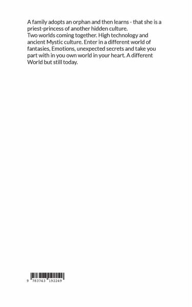 A family adopts an orphan and then learns - that she is a priest-princess of another hidden culture.Two worlds coming together. High technology and ancient Mystic culture. Enter in a different world of fantasies, Emotions, unexpected secrets and take you part with in you own world in your heart. A different World but still today.
