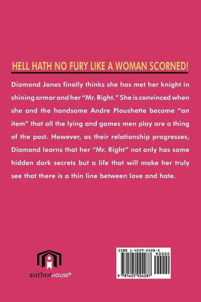 Hell Hath No Fury Like A Woman Scorned! Diamond Jones finally thinks she has met her knight and shining armor and her "Mr. Right." She is convinced when she and the handsome Andre Ploushette become "an item" that all the lying and games men play are a thing of the past. However as their relationship progresses, Diamond learns that her "Mr. Right" not only has some hidden dark secrets but a life that will make her truly see that there is a thin line between love and hate.